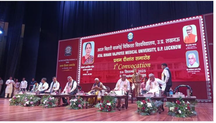 अटल बिहारी वाजपेई मेडिकल यूनिवर्सिटी का पहला दीक्षांत समारोह गुरुवार को सुबह 10.40 बजे से शुरू हुआ। यूनिवर्सिटी परिसर स्थित प्रेक्षागृह में पहला आयोजन किया गया। इसमें प्रदेश भर से नर्सिंग, पैरामेडिकल और एमबीबीएस छात्र-छात्राओं ने शिरकत की।