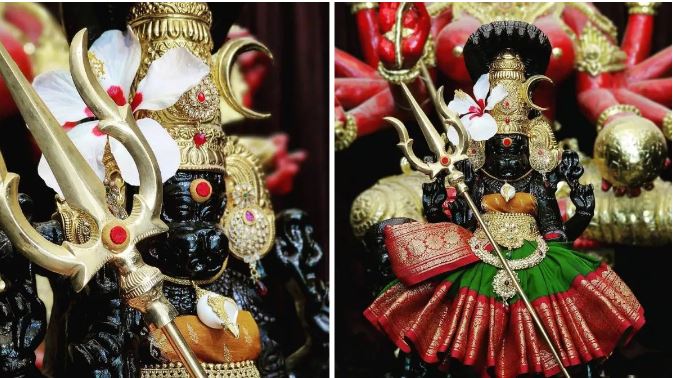 कई भुजाओं में अस्त्र-शस्त्र धारण किए हुए, जटाजूट बिखरे हुए, दांत और जिह्वा बाहर निकले हुए और भगवान शिव पर खड़ी हुई। बता दें, यह शिल्पकला काली के उस रूप का प्रतीक है जिसमें वे बुराई का अंत करके सृष्टि में संतुलन स्थापित करती हैं।