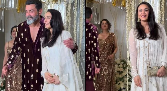 बॉबी देओल, प्रीति जिंटा के साथ मस्ती करते हुए दिखाई दिए। उनका वीडियो भी सोशल मीडिया पर सामने आया है। वीडियो में देखा जा सकता है कि पार्टी के बाहर प्रीति और बॉबी ने एक-दूसरे गले लगाने के बाद एक्टर की वाइफ तान्या देओल से मिलीं। तीनों ने चिट-चैट किया।