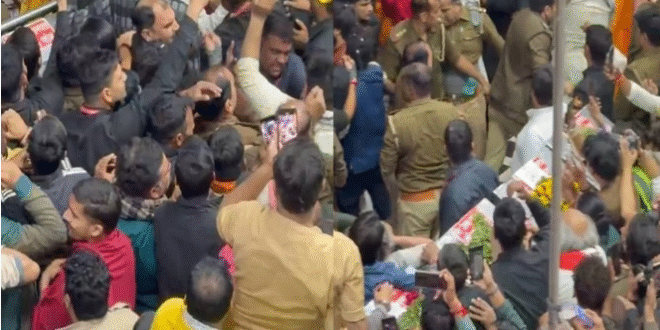 सनातन एकता पदयात्रा के समापन के बाद रविवार को वृंदावन के विश्व प्रसिद्ध बांके बिहारी मंदिर में दर्शन करने पहुंचे बागेश्वर धाम पीठाधीश्वर धीरेंद्र कृष्ण शास्त्री के दर्शन के दौरान मंदिर की व्यवस्थाएं ध्वस्त हो गईं। उनके आगमन के साथ आई भारी भीड़ बेकाबू हो गई, जिसके चलते पुलिस और मंदिर के सेवायतों के बीच तीखी नोकझोंक और जमकर धक्का-मुक्की हुई। स्थिति इतनी बिगड़ गई कि हंगामे में कुछ सेवायतों के कपड़े तक फट गए। नाराज सेवायतों ने पुलिस पर अभद्रता करने और पीटने का गंभीर आरोप लगाया है।