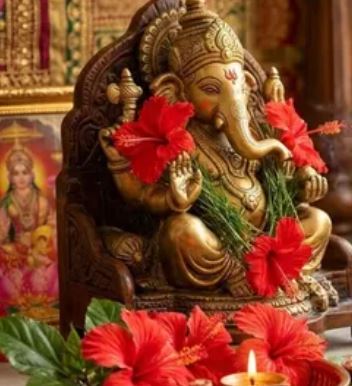 गणेश जी को 11 या 21 लाल गुड़हल के फूल चढ़ाएं।