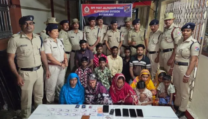 पश्चिम बंगाल के जलपाईगुड़ी रोड स्टेशन पर रेलवे सुरक्षा बल (RPF) ने दिल्ली जाने वाली नॉर्थ-ईस्ट एक्सप्रेस ट्रेन से 14 बांग्लादेशी नागरिकों को पकड़ा। इसमें चार महिलाएं और चार नाबालिग शामिल हैं। रेलवे सुरक्षा बल को इन लोगों के पास से आधार कार्ड भी मिले हैं। जिसकी जांच की जा रही है। RPF इंस्पेक्टर बिप्लब दत्ता ने बताया कि यह जांच खास सूचनाओं के आधार पर की गई थी।