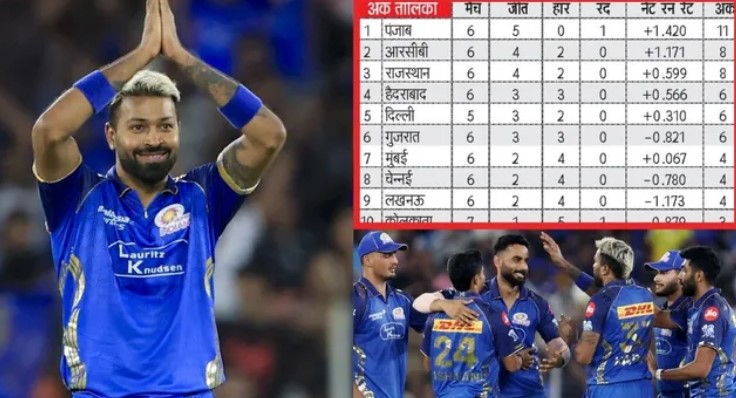 गुजरात की टीम हार के बाद छठे पायदान पर ही है, जबकि जीत के बाद एमआई की टीम को नेट रन रेट में बड़ा फायदा मिला। मुंबई की टीम ने सीजन की अपनी दूसरी जीत के साथ 10वें पायदान से 7वें पायदान पर छलांग लगाई। उन्होंने इस दौरान केकेआर, एलएसजी और सीएसके को पछाड़ा।